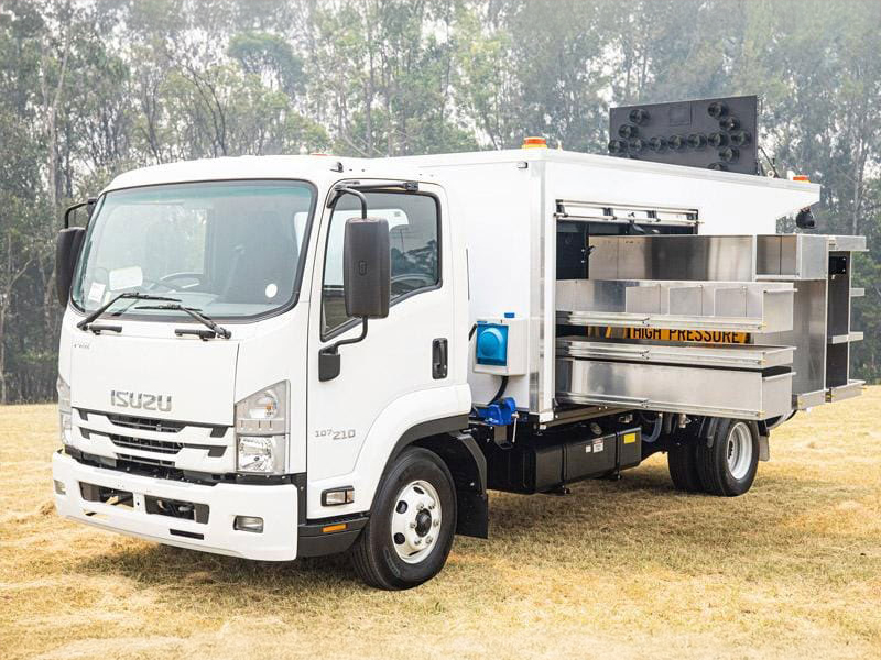 Fully enclosed Enviroline truck body with water tank mounted close to rear axle for ultimate weight distribution |